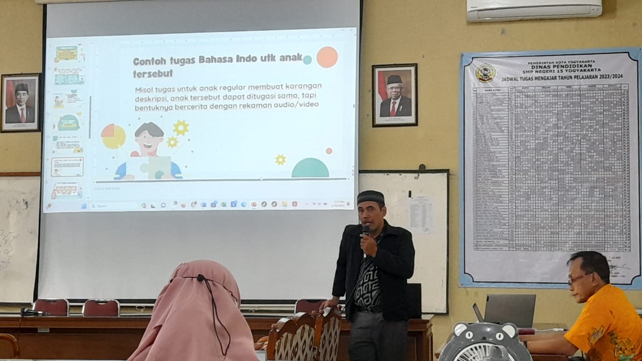 Peserta didik berkebutuhan khusus perlu diterima di sekolah manapun tanpa terbebani apapun. Di Indonesia banyak anak yang berkebutuhan khusus tidak diperhatikan. Apalagi di Daerah Istimewa Yogyakarta banyak anak yang tidak diterima. kegiatan workshop ini dilaksanakan pada Kamis, 29 Februari 2024. Perlu diperhtikan pula pada sekolah unutk menerima anak berkebutuhan khusus. Sekolah bisa melaksanakan identifikasi dan asesmen ABK. Pertama dilaksanakannya identifikasi melalui wawancara atau observasi. Dari hasil identifikasi tersebut akan diketahui profil anak kemudian dapat diketahui pula Riwayat hidup tersebut.